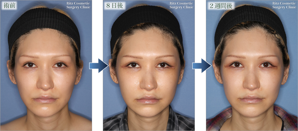 頬骨縮小術+前頭洞骨切り+上眼瞼リフト+貴族手術 腫れの経過