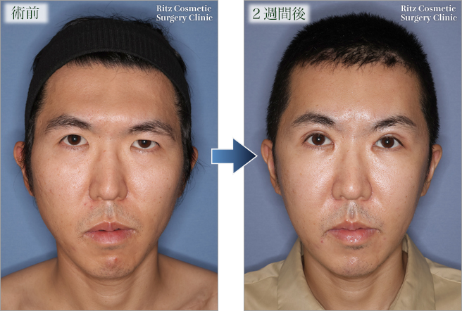 頬骨弓の削骨・内方転位骨切り術により、顔幅の広い方では、顔面横径(顔の横巾)は最大で左右で約2cm近くまで細くすることが可能となります。